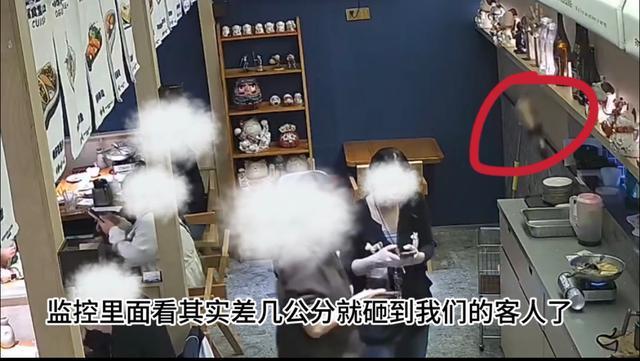 “一位女士突然拿起餐具扔向服务员。”刘先生认为,她应该是孩子的妈妈,抛掷的餐具,瞄准了服务员,但因准头偏差,砸到了货架上的酒瓶,“1.5L的酒掉落摔碎,可见她用了多大的力气,我觉得这种行为非常过分。”